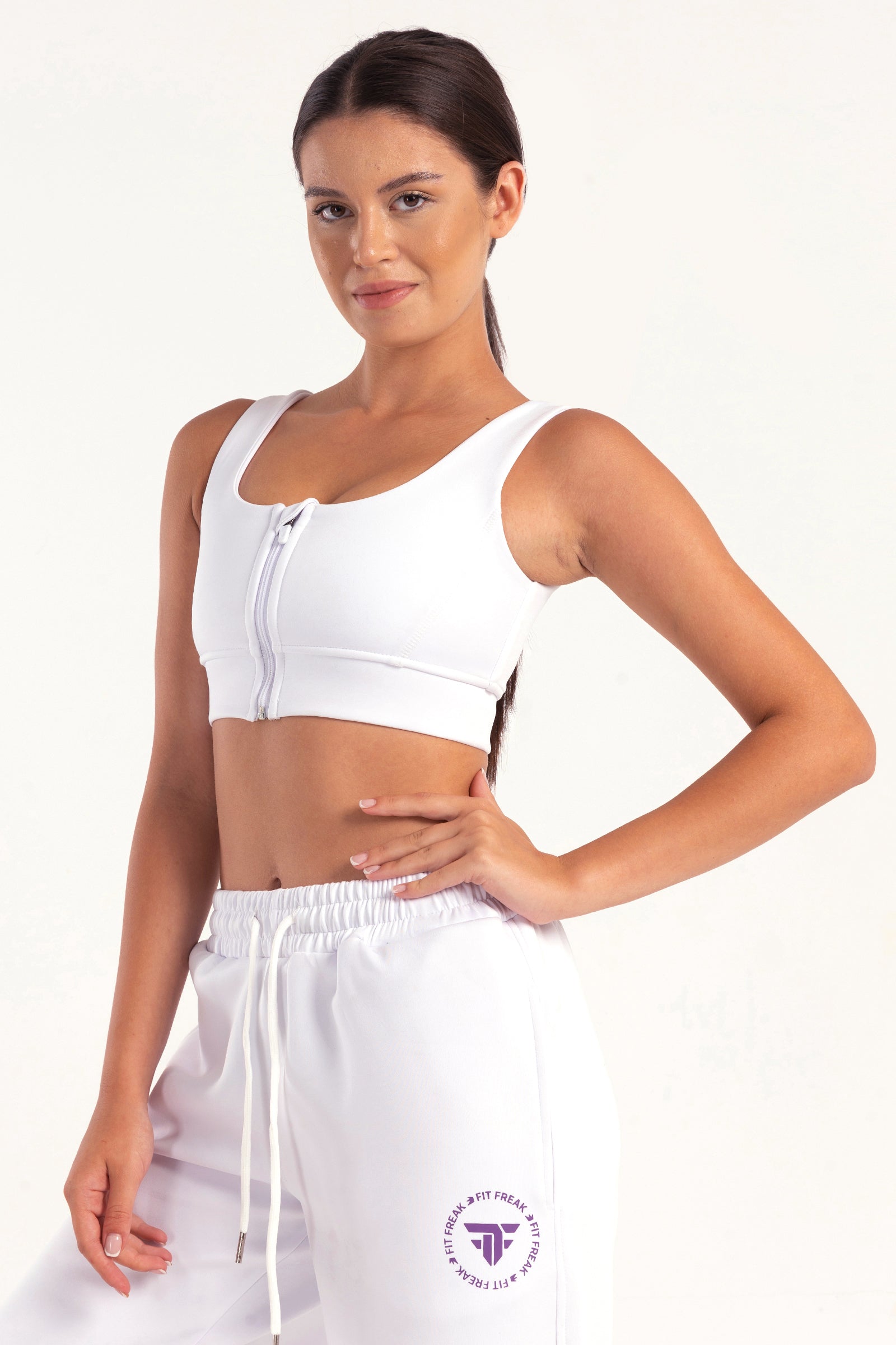 Supportive sports bra with a front zipper closure for easy wear and a secure fit. Perfect balance of style, comfort, and performance.