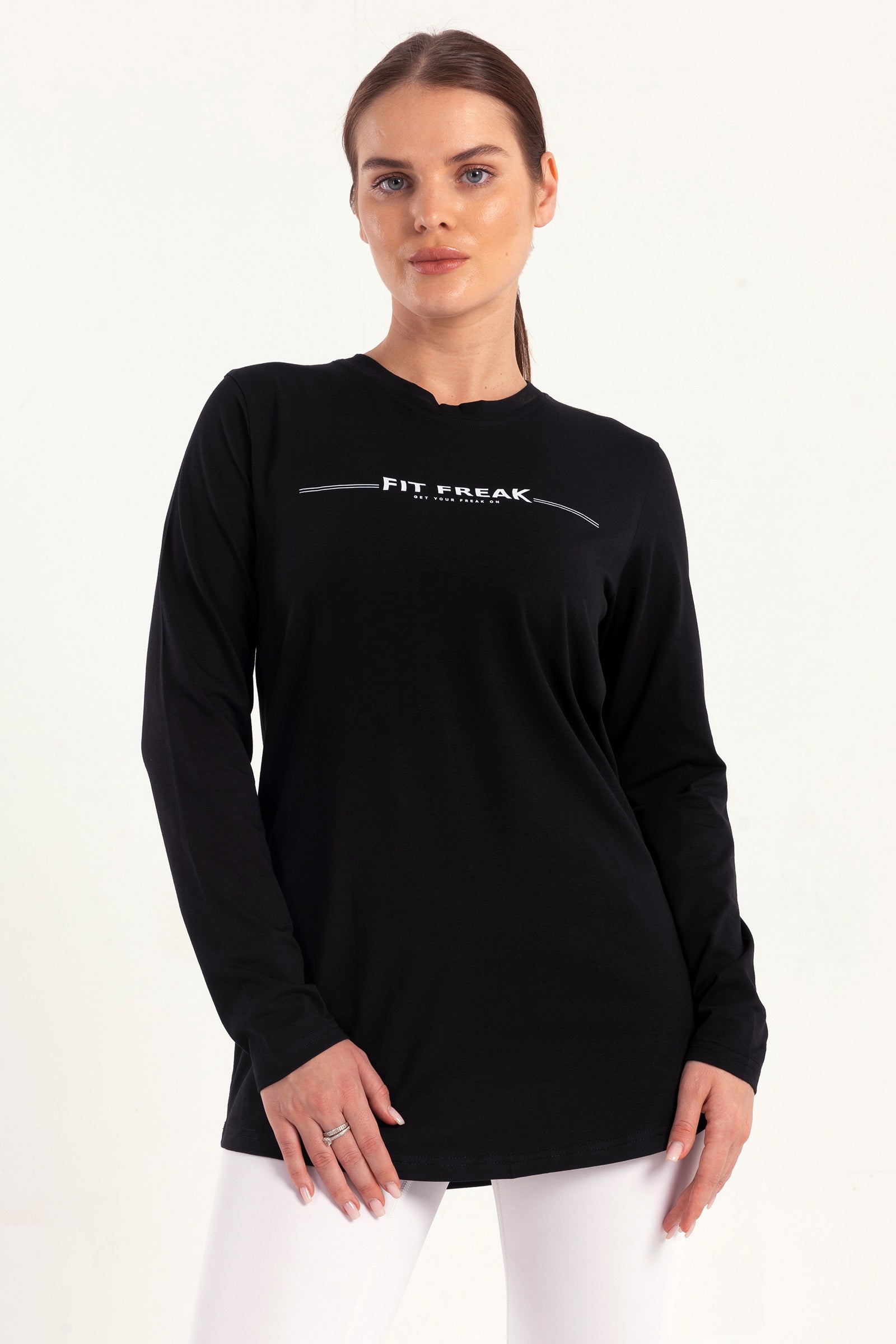 This long sleeve combines performance and comfort, featuring a sleek FIT FREAK chest print and breathable fabric for a relaxed fit during workouts or casual outings.