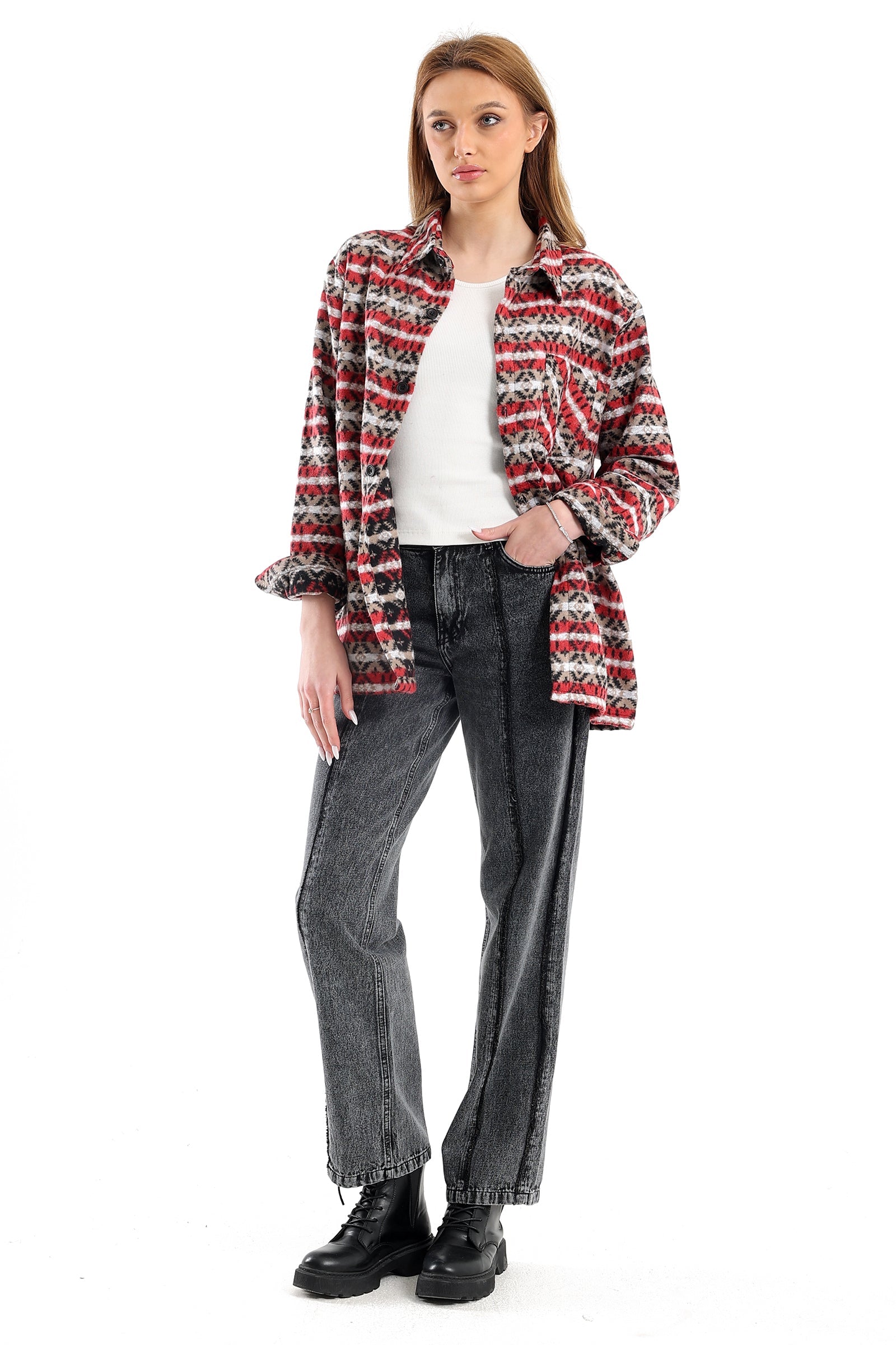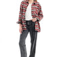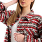 Loose fitting collared printed jacket featuring drop shoulders, flap chest pockets, long sleeves and buttons down the front.